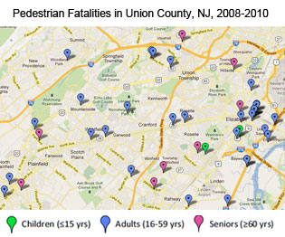 This analysis identifies the most dangerous roads in the tri-state region for pedestrian fatalities. Looking at federal data from 2008 to 2010, it includes factsheets and online maps that identify the locations of pedestrian fatalities and the age and gender of those killed. Counties in downstate New York and New Jersey that had 10 or more pedestrian fatalities over the three-year period were analyzed, as was the state of Connecticut.